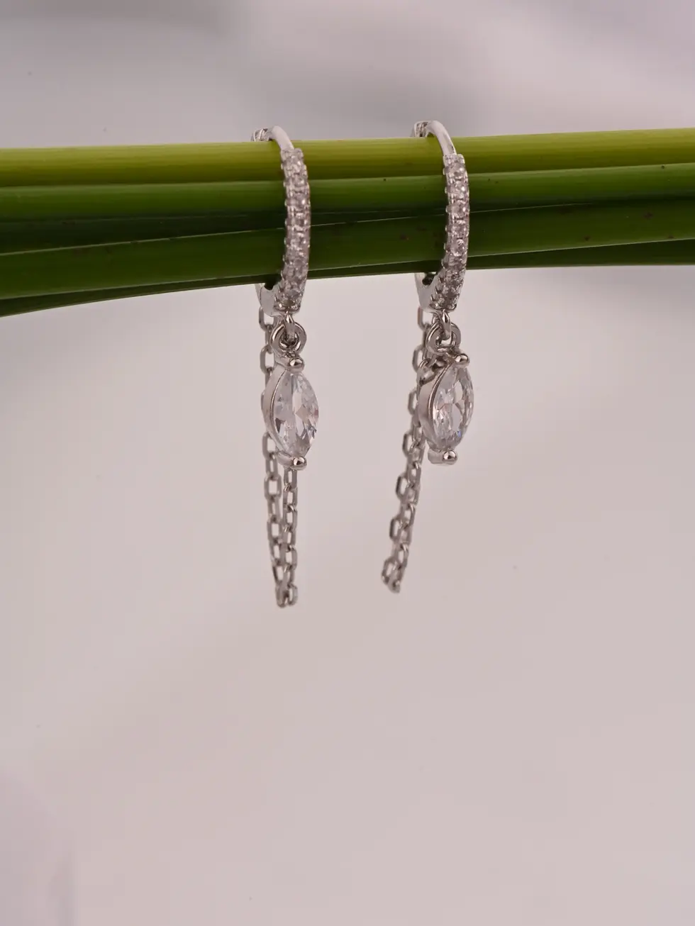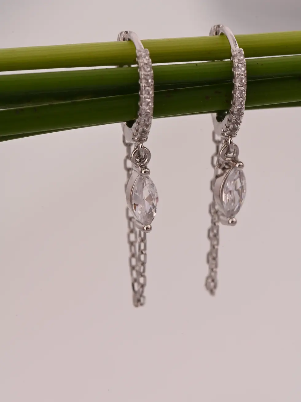 עגילי חישוק עם שרשרת ואבן - כסף 925