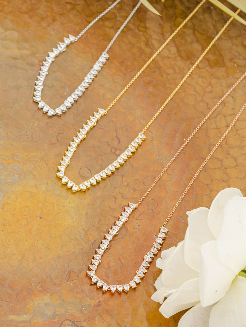 התכשיט עשוי מכסף ועובר ציפוי רוז גולד (זהב אדום) עבה, אשר עמיד במים. הזירקונים שלנו הם ברמה גבוהה מאד (זירקוני טריפל A, שזה זירקון שלא מאבד את הצבע והברק שלו). בנוסף, התכשיט הוא היפו-אלרגני.