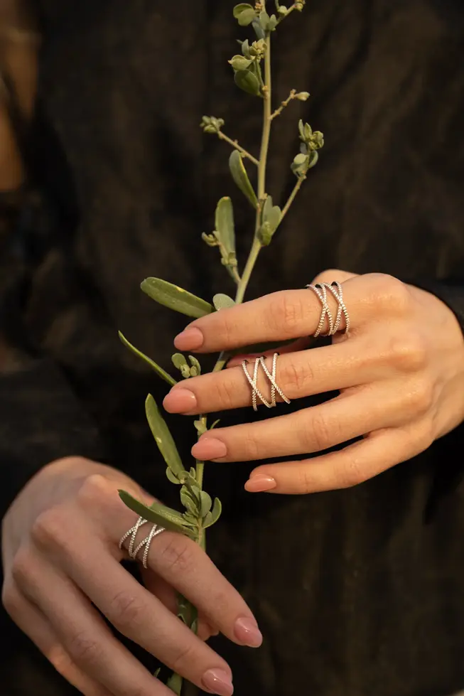 טבעת טיפה כפולה, שמשלבת בין עיצוב עדין לאלגנטיות מודרנית.