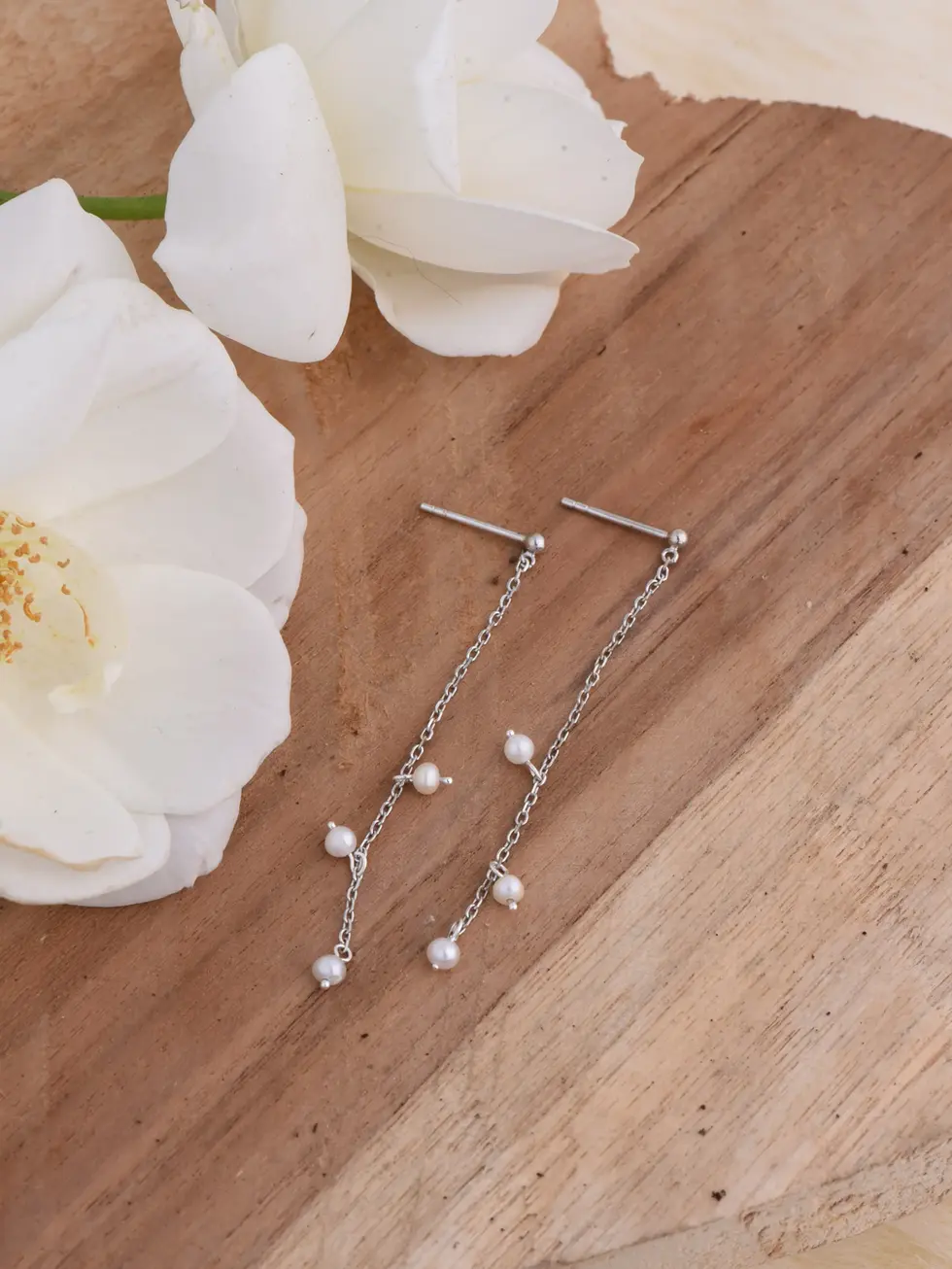 עגיל פנינים נופל שמביא עמו קסם ייחודי וזוהר רך לכל הופעה.