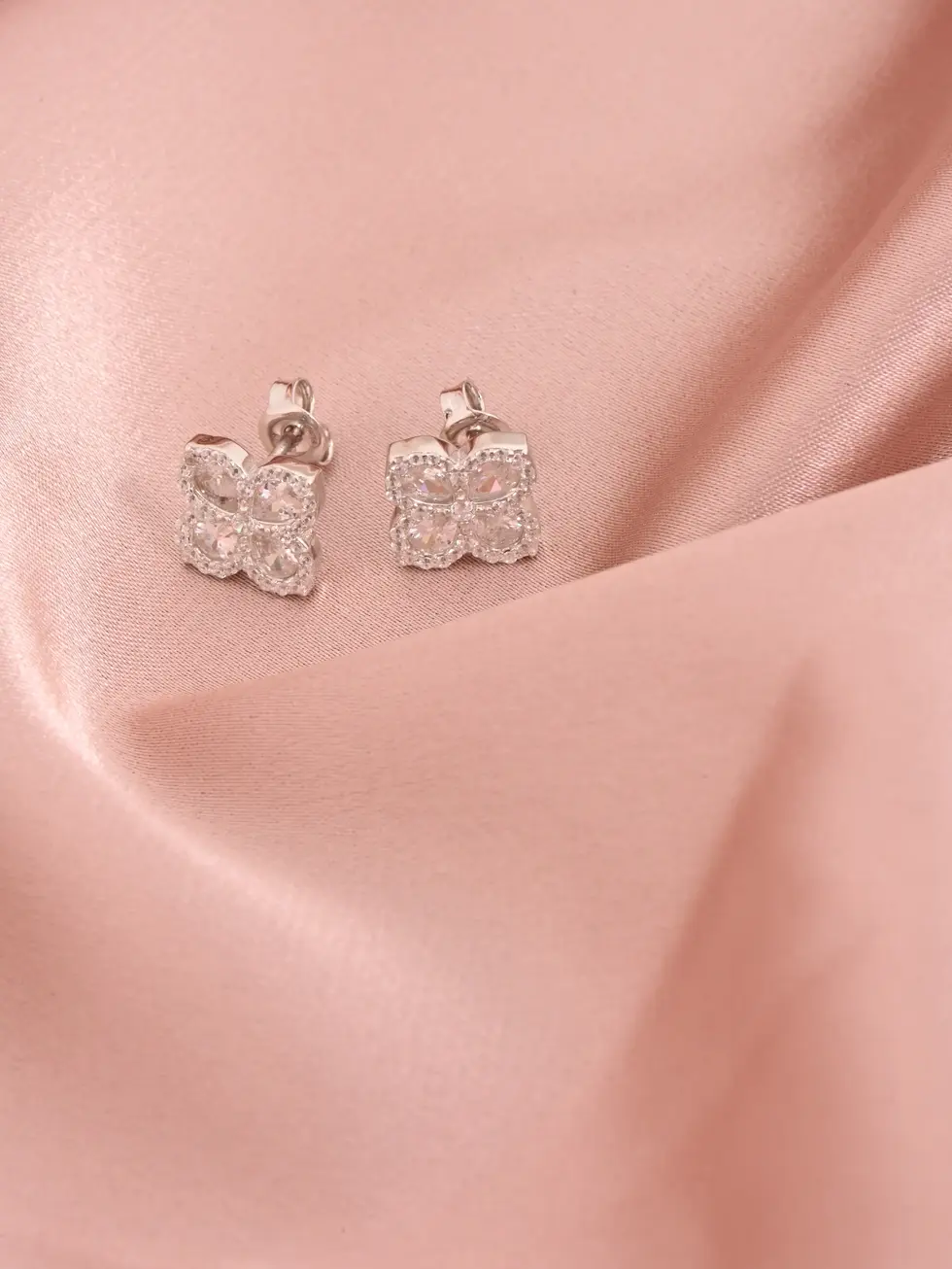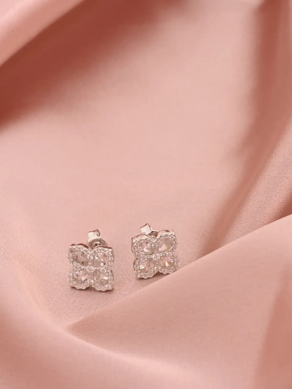 עגילי פרח 4 עלים גדול - כסף 925