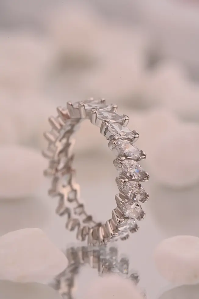 האבנים המבריקות שזורות בשורה מושלמת, מוסיפות נופך של יוקרה וזוהר לכל יד.